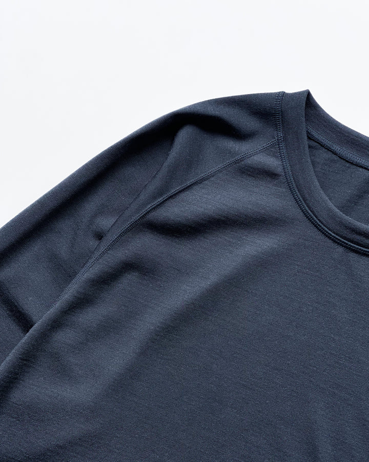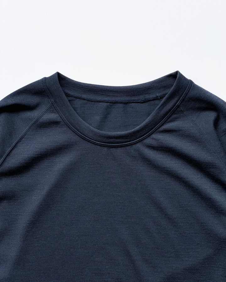 ウール特有の撥水力もあり小雨程度なら弾くアウター使い出来るメリノウールTシャツです。