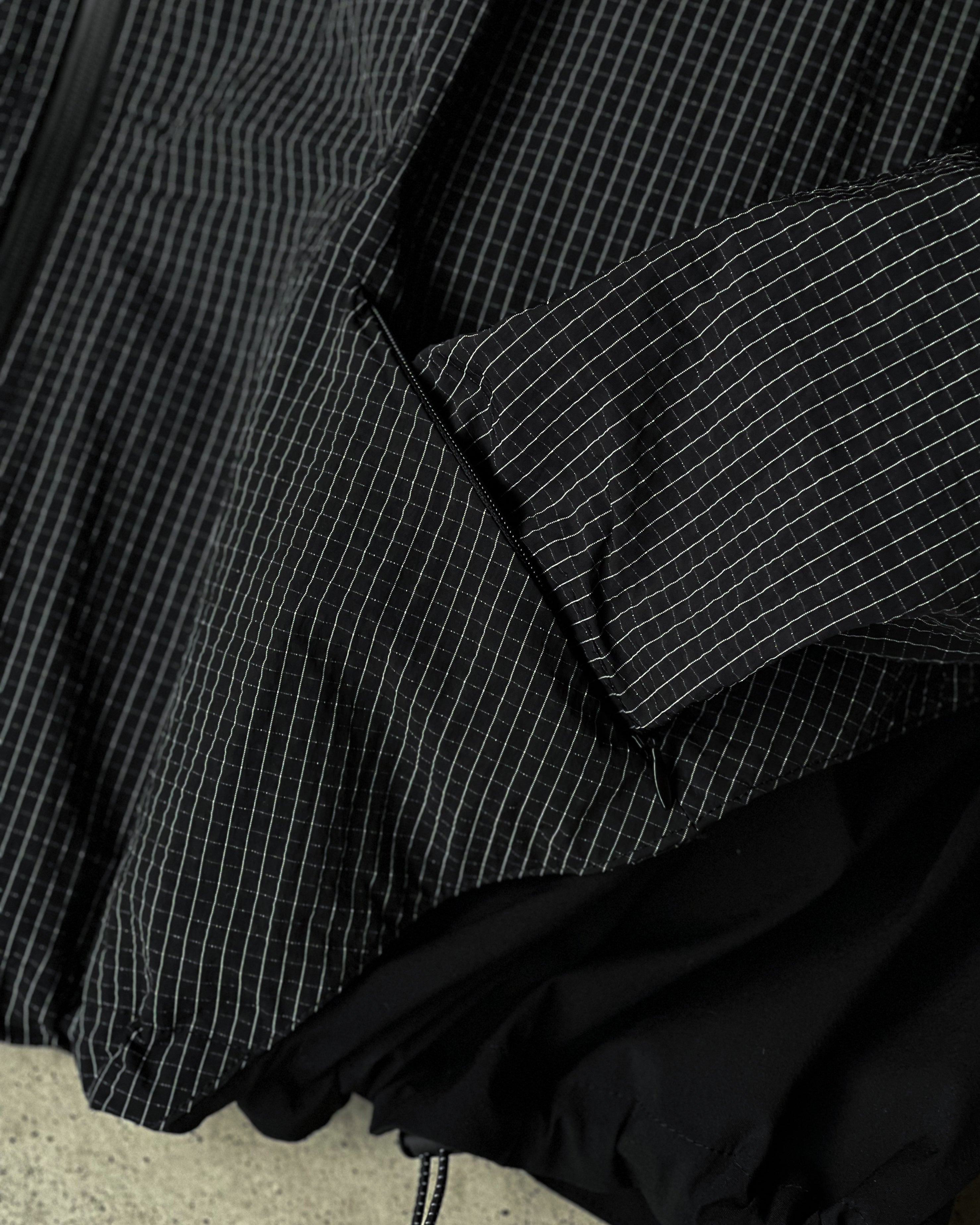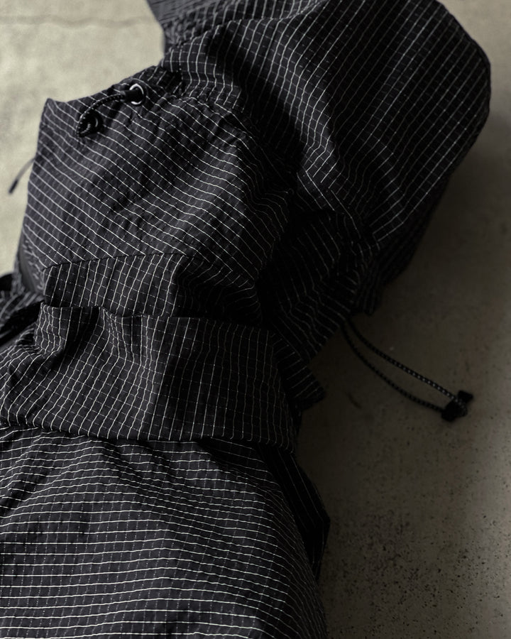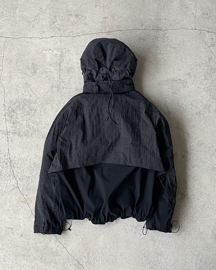 様々な位置についたドローコードやジップポケットでシルエットの変化、実用性の高さを感じていただけます。