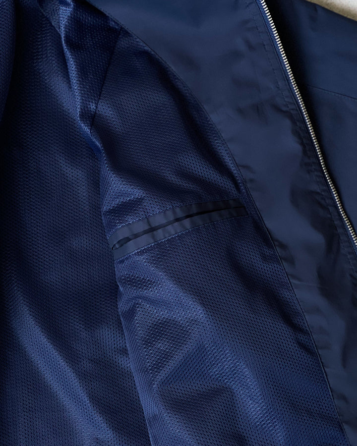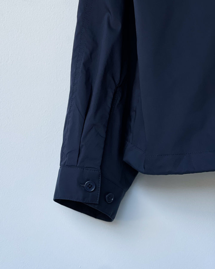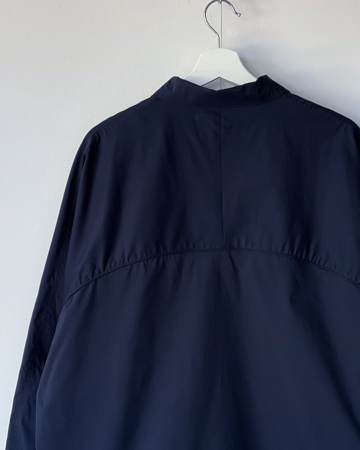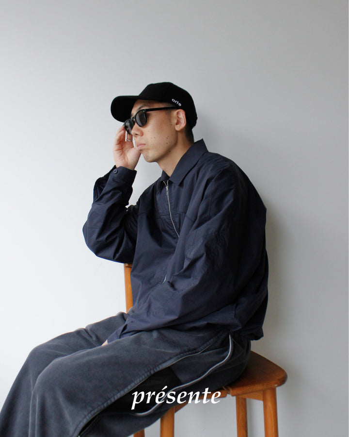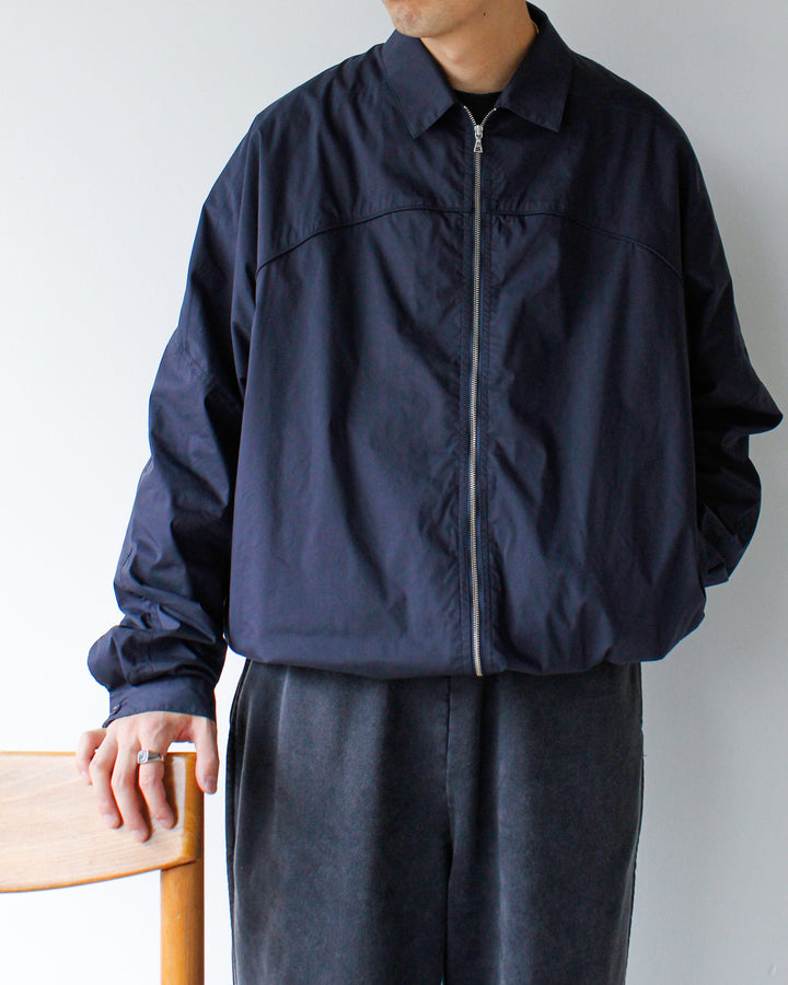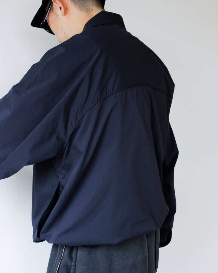 今作はフロント&バックに施した曲線的なパイピングが特徴的デザイン。生地は表にT/C TYPEWRITER、裏地にメッシュ配置して、シャツのようにオールシーズン軽く羽織るれるジャケットに。シャツらしいポイントとして袖もカフスにしており、シーズンによってはロールアップを楽しむのも有りです。