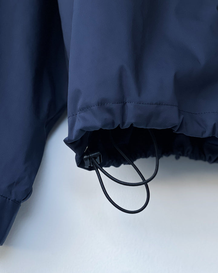 裾にはドローコードを配置。ギュッと絞って好みの丈感に調整してご着用ください。