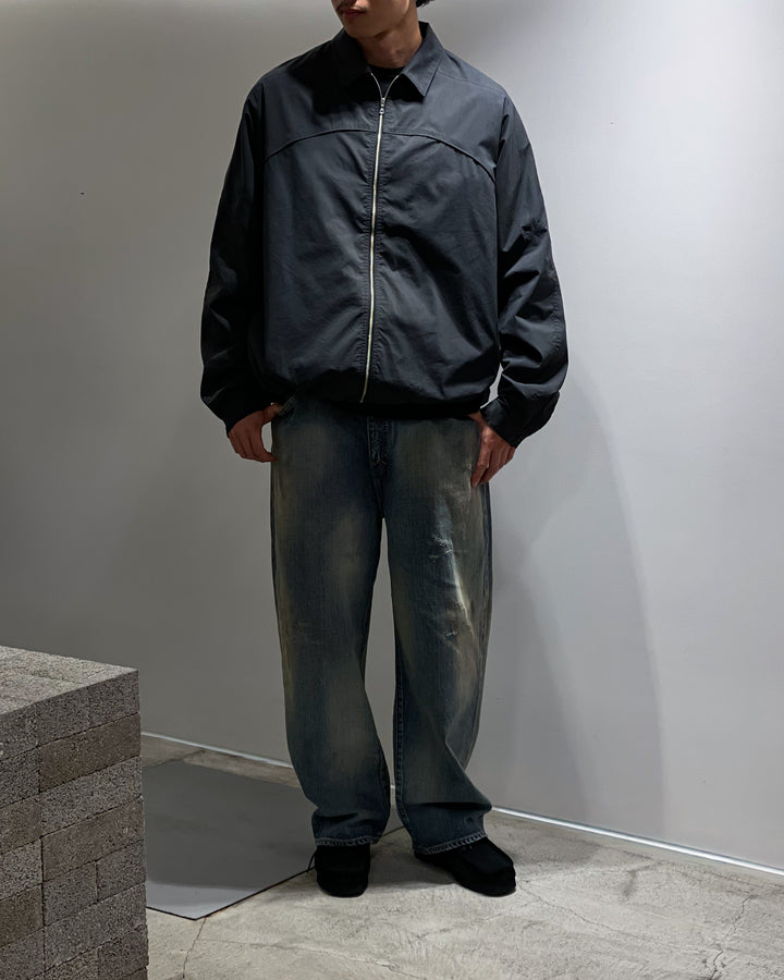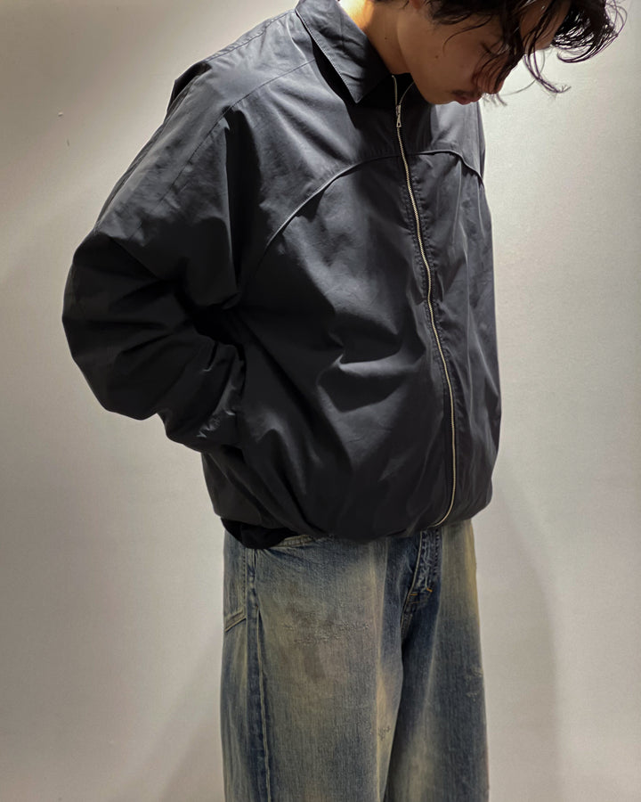 ボディの生地とメタルファスナーのコントラストも抜群に映え、ぐるっと体を覆った曲線的なパイピングから袖に向けてのシルエットが美しくまとまった一着です。