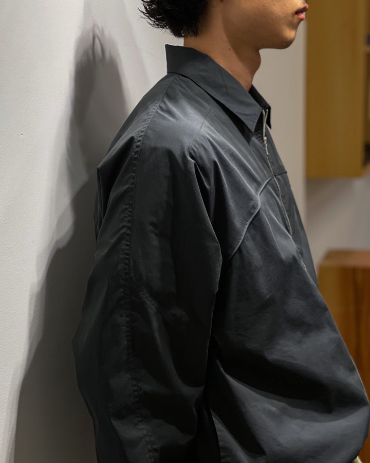 今作はフロント&バックに施した曲線的なパイピングが特徴的デザイン。生地は表にT/C TYPEWRITER、裏地にメッシュ配置して、シャツのようにオールシーズン軽く羽織るれるジャケットに。シャツらしいポイントとして袖もカフスにしており、シーズンによってはロールアップを楽しむのも有りです。