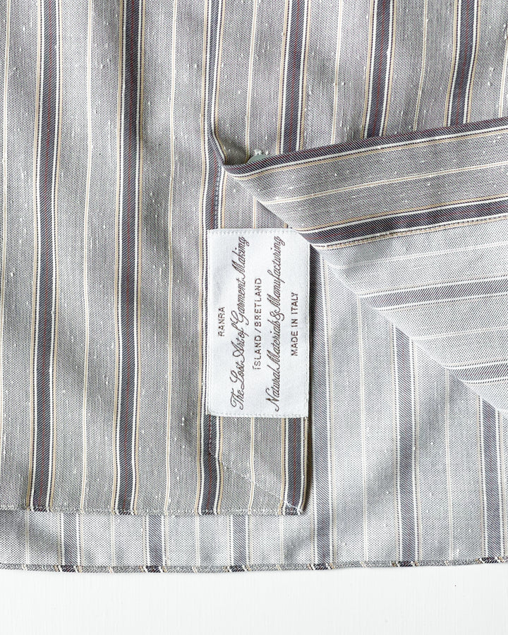 【RANRA】FIELD STRIPY COTTON SILK LS SHIRT - KHAKI/IVORY