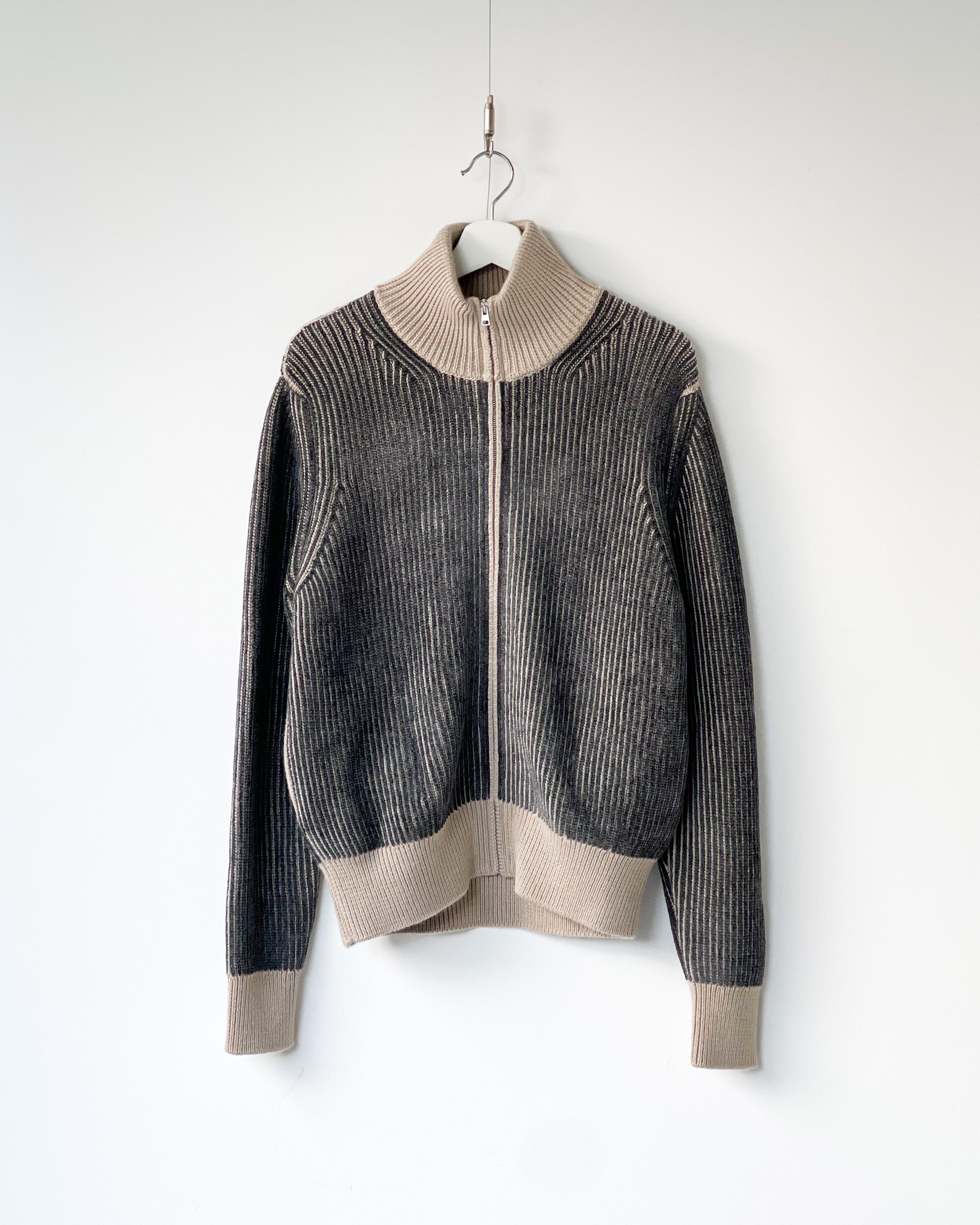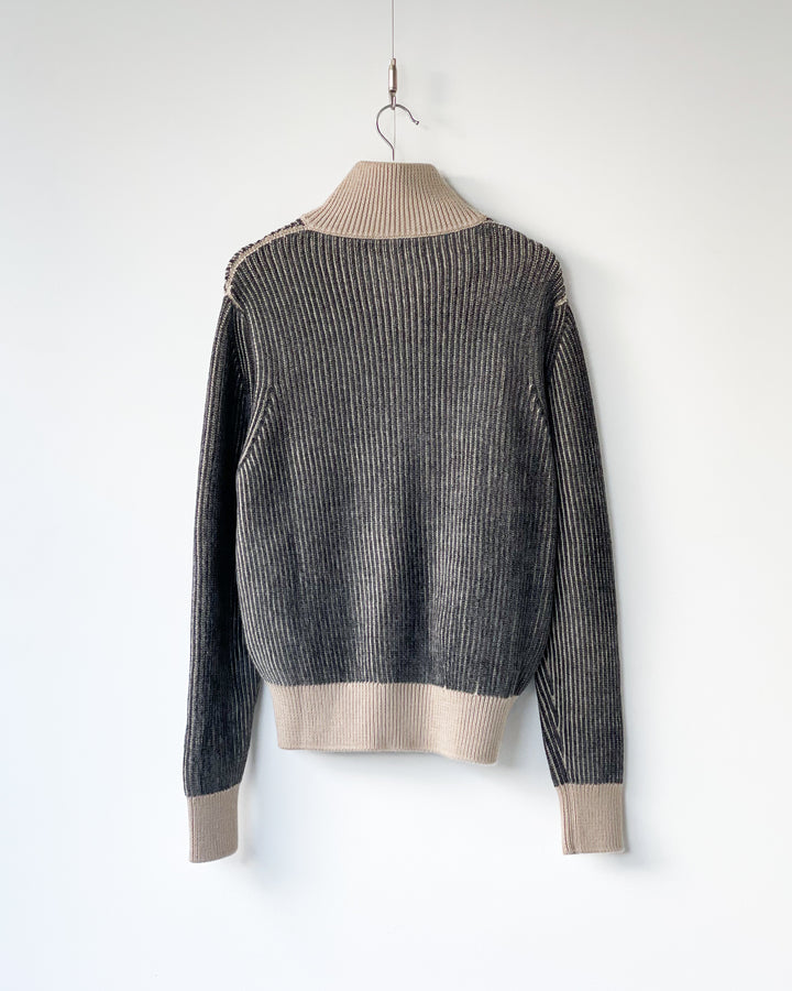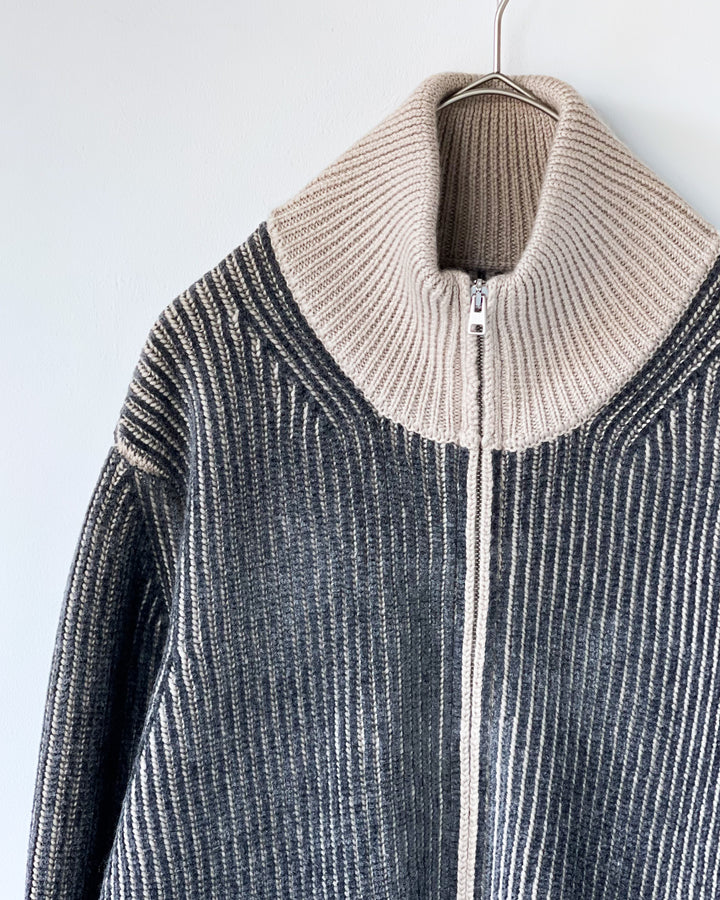 ビスコースのトロミと、メリノウールの柔らかく温かみのある素材の良さを兼ね備えたジップセーター。重厚感もあり、アウターの代わりとしてもしっかり活躍します。