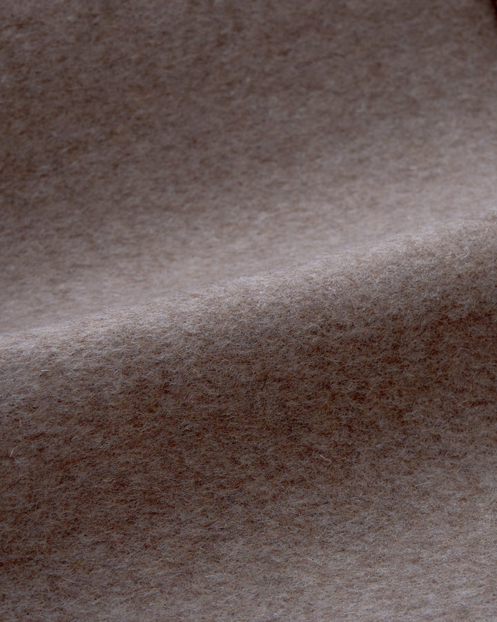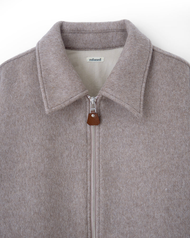 今季のテーマを象徴する一着。高品質なウール糸を使用した二重織ビーバー生地を使用し、目付けを重くすることで深みのある質感と上質な保温性を確保。シンプルなシングルファスナーのウールジャケットだからこそ素材に拘り作り上げた一着です。ファスナーの引き手はキークロシェットをイメージしたユニークな仕様で、実際に鍵を付けることも可能です。