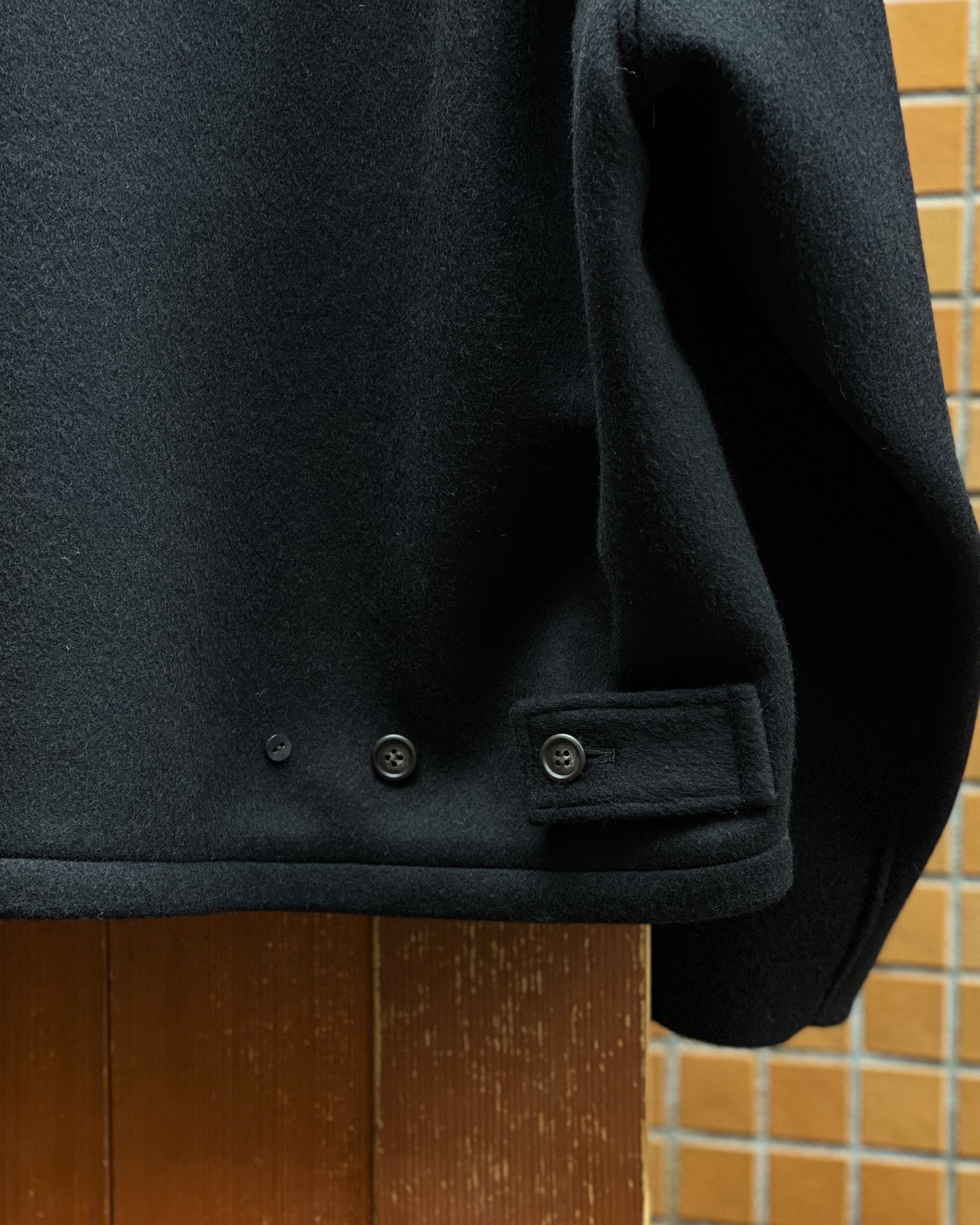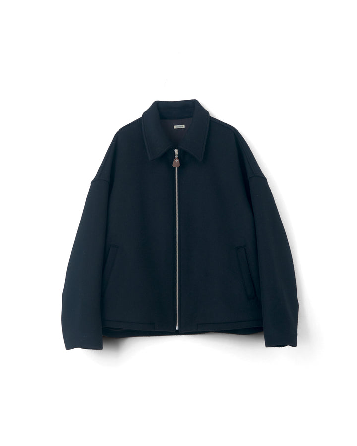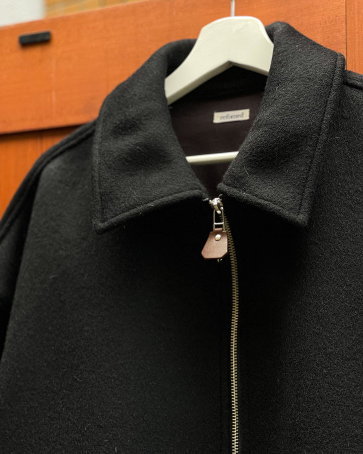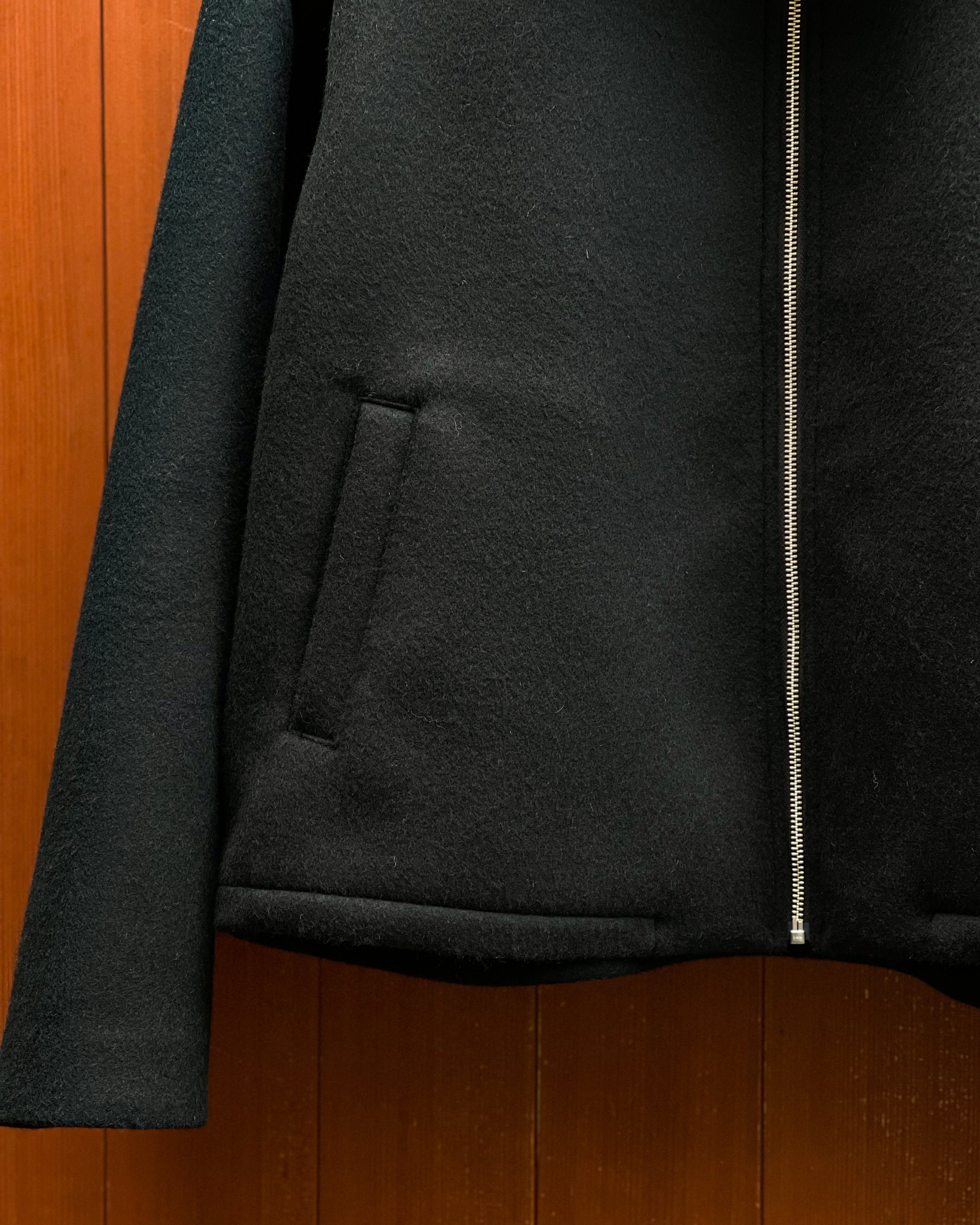 今季のテーマを象徴する一着。高品質なウール糸を使用した二重織ビーバー生地を使用し、目付けを重くすることで深みのある質感と上質な保温性を確保。シンプルなシングルファスナーのウールジャケットだからこそ素材に拘り作り上げた一着です。ファスナーの引き手はキークロシェットをイメージしたユニークな仕様で、実際に鍵を付けることも可能です。