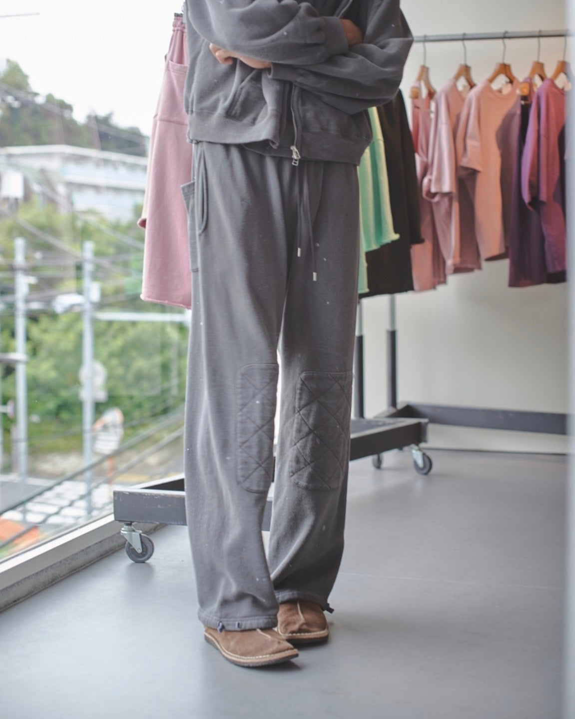 若手職人をイメージして制作したパッチ付きスウェットパンツ。