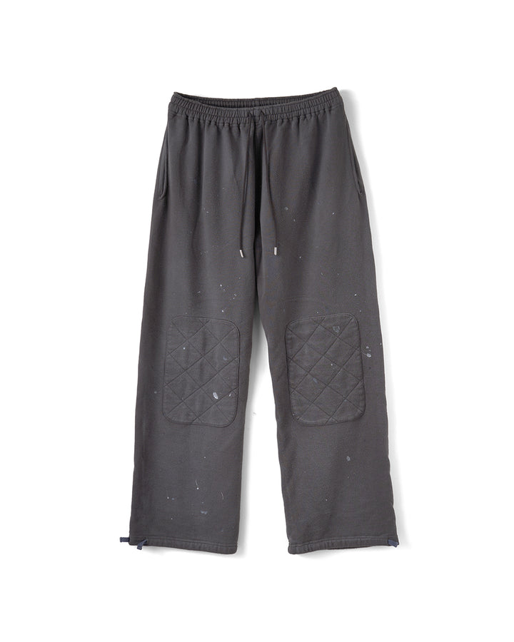 生地は70〜80年代の素材をイメージしコットンレーヨン混合の裏毛スウェット生地を使用しており、軽くて柔らかな着心地。膝パッチ付きでデザインで裾はドローコードでシルエット調整可能。