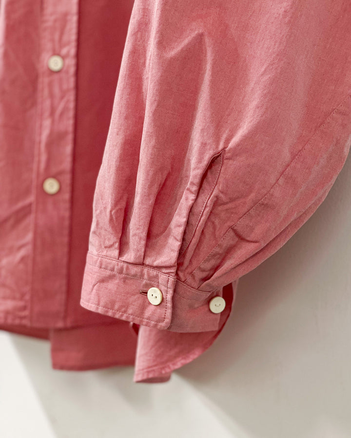 今回はREDとMINTの鮮やかな好配色がとても気分のコットンシャンブレー素材を採用。ワンウォッシュで仕上げられており、軽く柔らかで、通気性も良い春夏に適した一着に仕上がっています。
