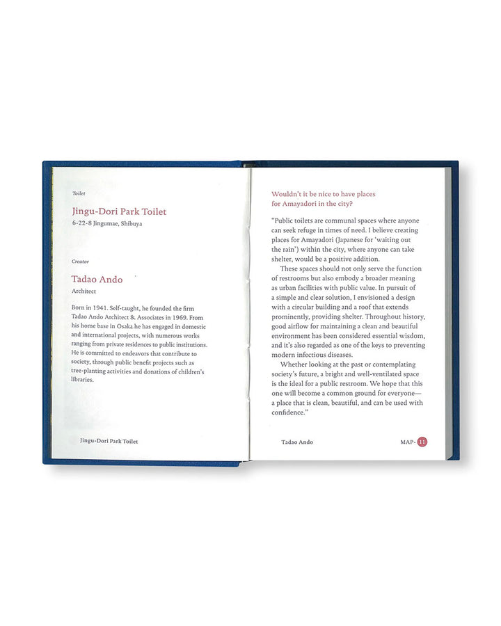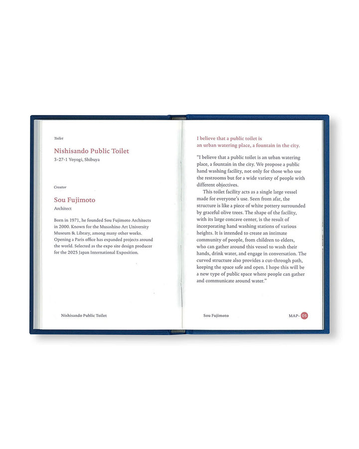 街なかの公共トイレを誰もが驚く、新しい気づきの場へと刷新するべくスタートした〈THE TOKYO TOILET〉プロジェクトをまとめた写真集のようなガイドブック。