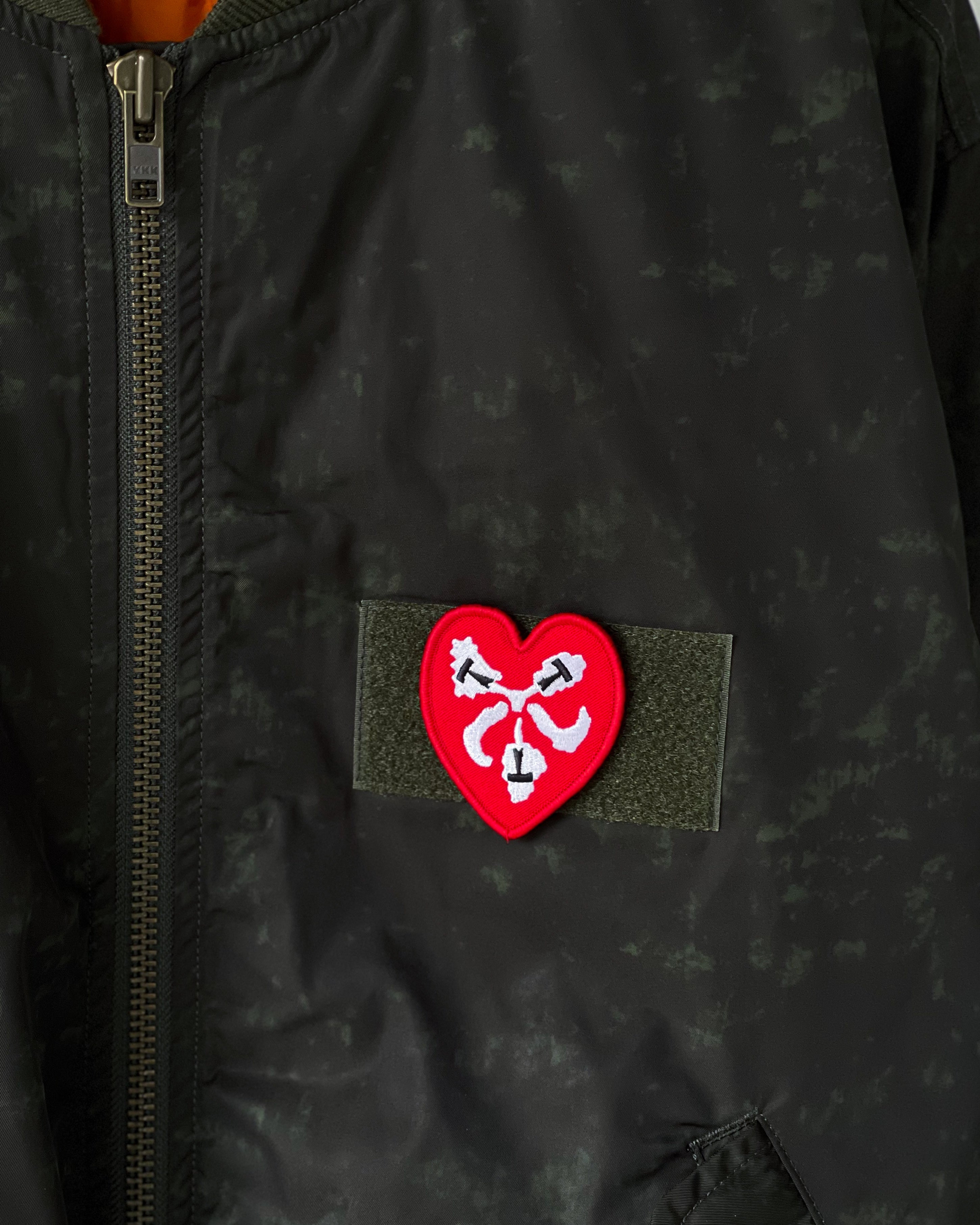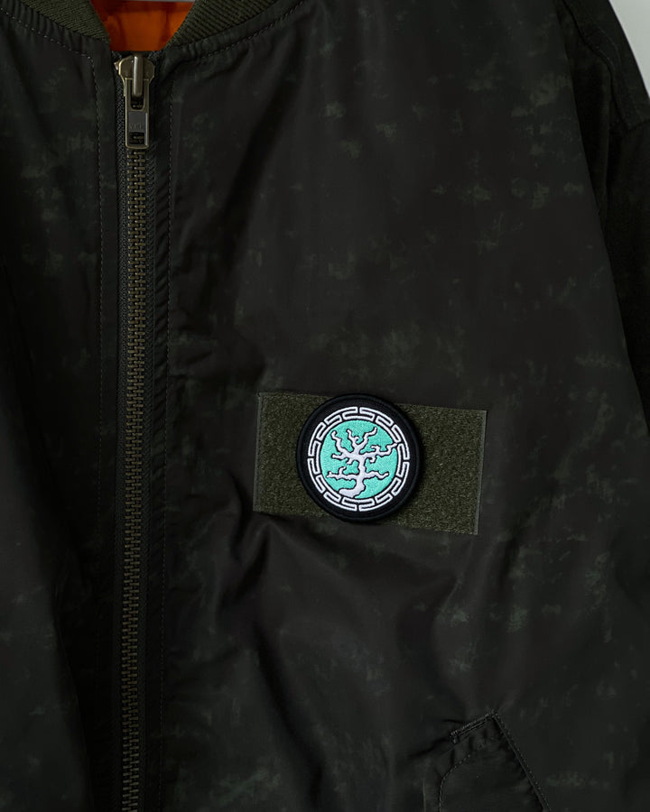 TTTの今季のキーグラフィックを用いた3種のワッペンが付いたボンバージャケット。その日の気分で付け替え可能なのでアレンジして使ってください。ムラ感のあるボディも最高です。