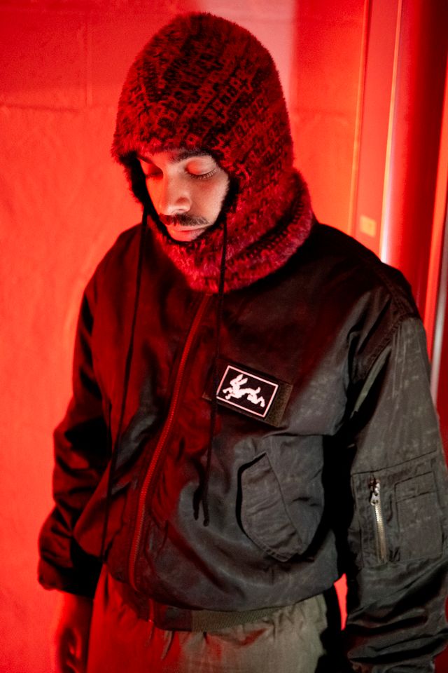 【THE TRILOGY TAPES】TTT SHADOW MULTIPLE KNITTED HOOD - CARMINE RED/BLACK