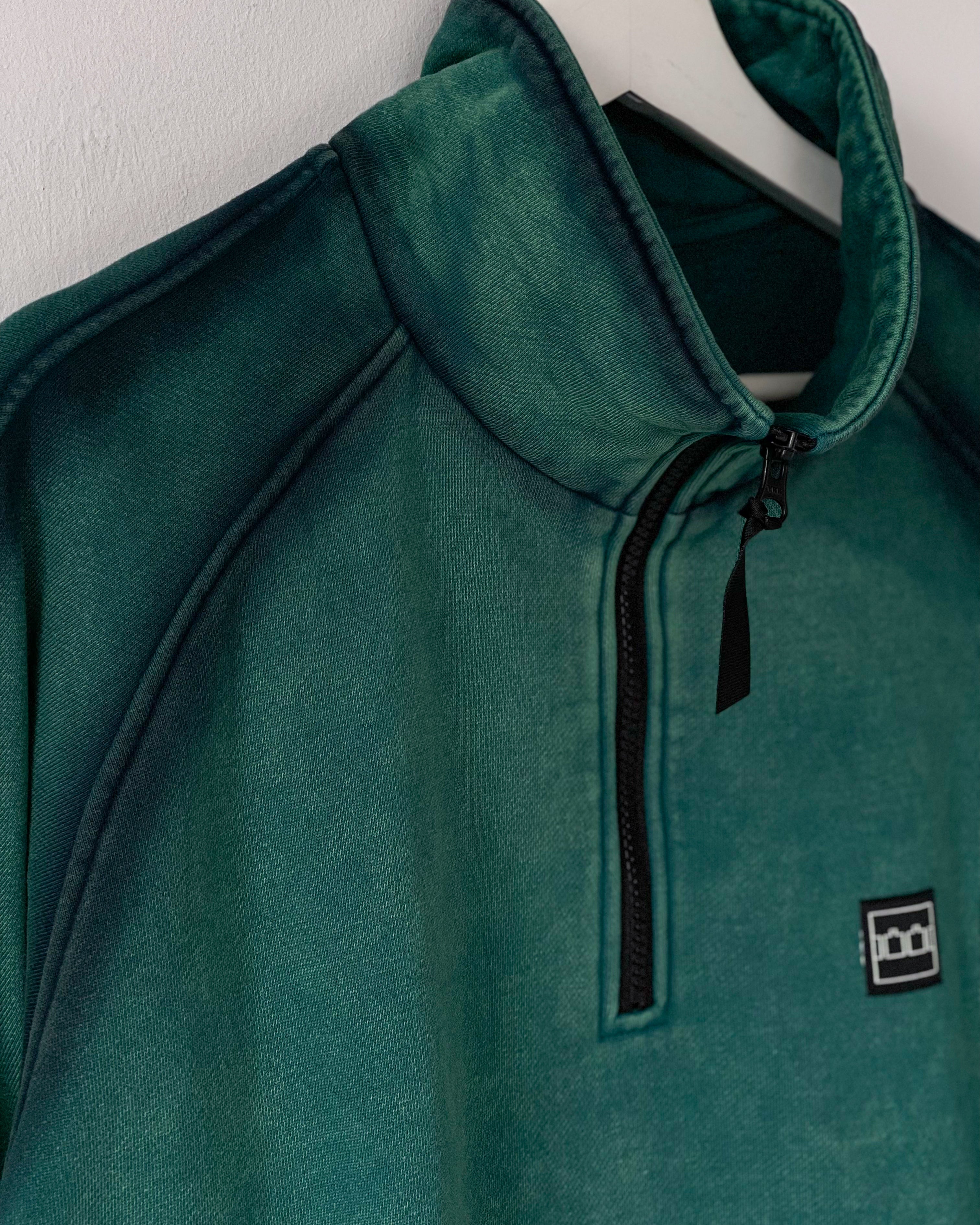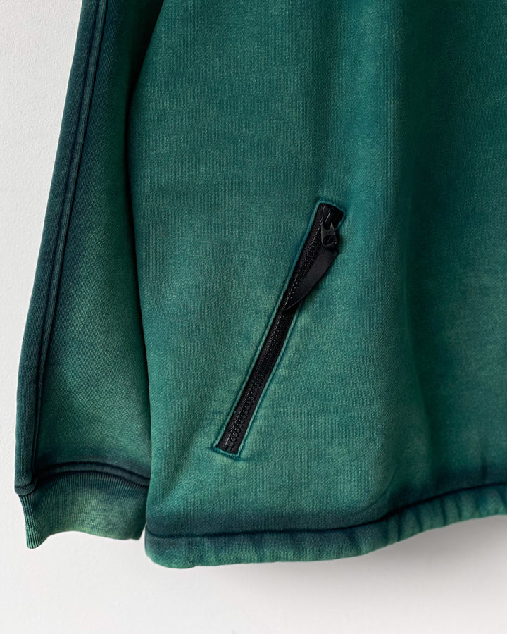 スプレープリントでムラ感のある仕上がりのボディが最高の一着。ハーフジップのハイネックスウェットも雰囲気ムンムンです。サイドにジップポケット、裾にアジャスター付き。