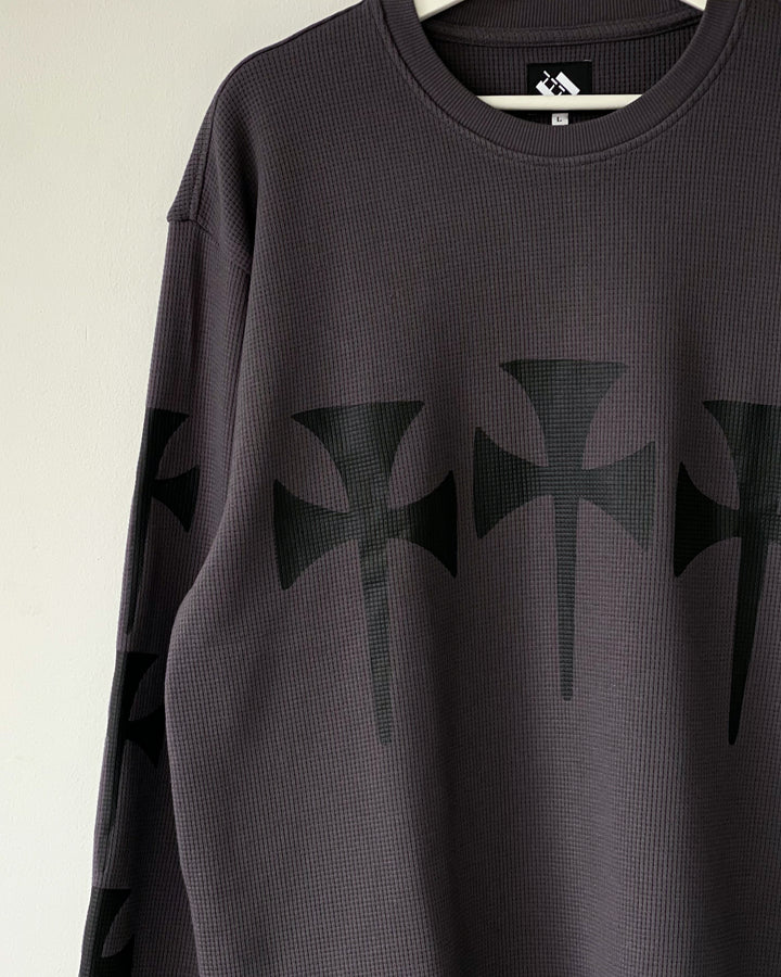 【THE TRILOGY TAPES】TTT THREE CROSS WAFFLE LONGSLEEVE - CHARCOAL/BLACK
