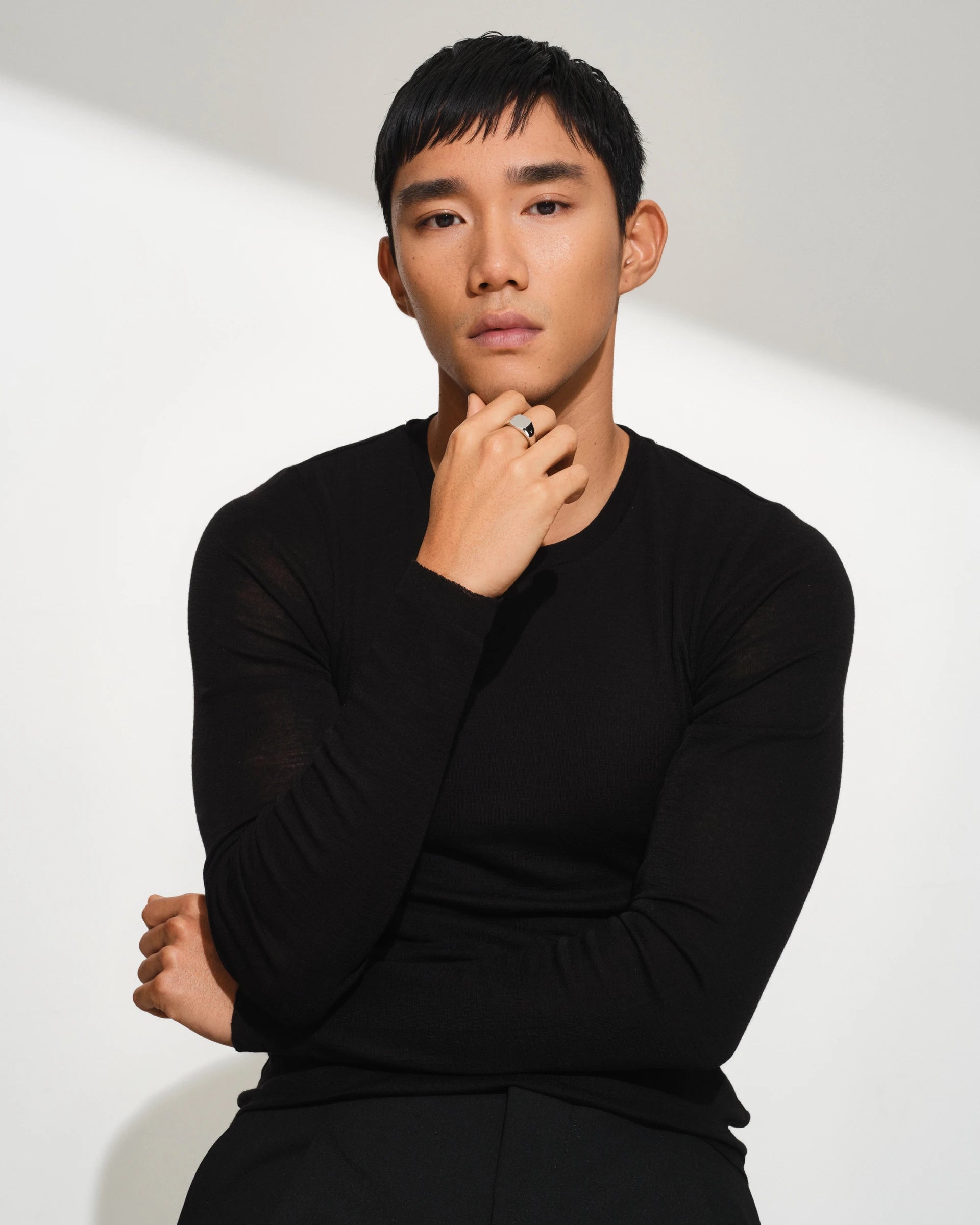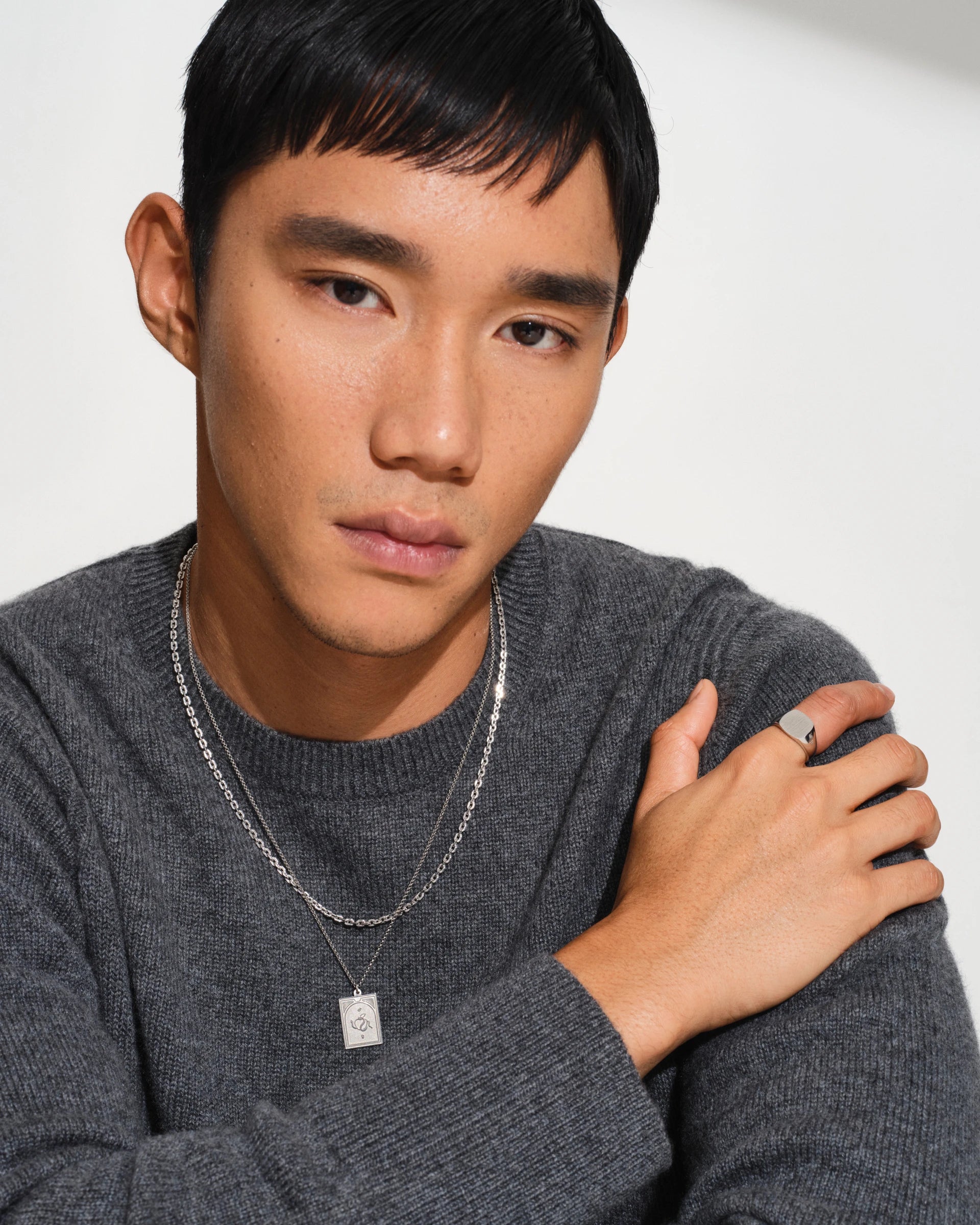 ケイ・リングはミディアムサイズのシグネットリングで、クリーンなカットエッジとサテン仕上げのテーブルトップが、ポリッシュ仕上げの明るいシルバー製シャンクとのコントラストを際立たせています。単体でも着用いただけますが、他のトムウッドのシグネットシェイプのアイテムと合わせれば手元に彫刻的美しさを添えることができます。