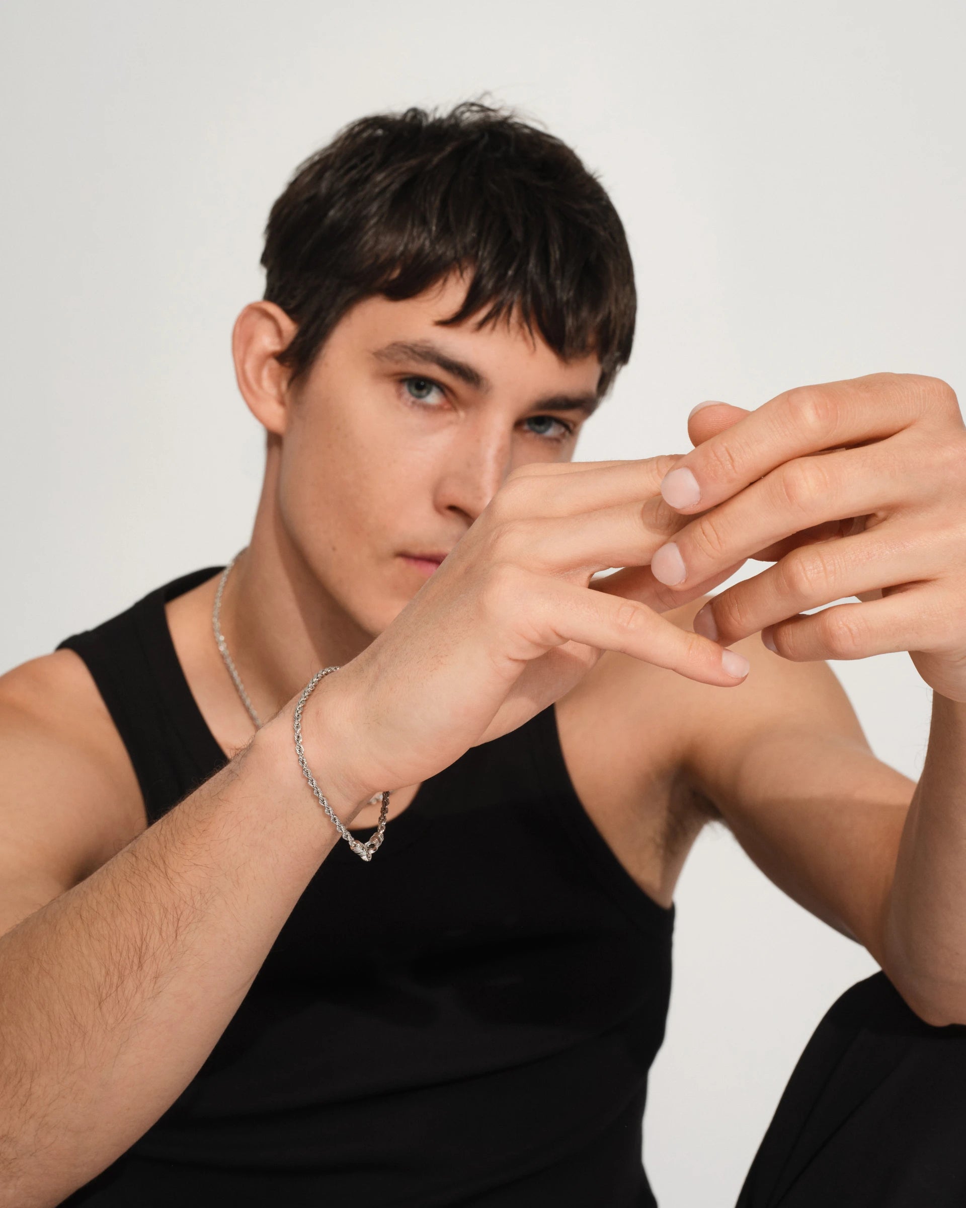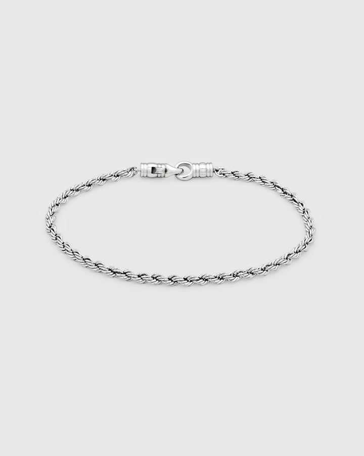 ロープブレスレットは、しっかりと絡み合ったリンクで作られており、質感の次元を追加します。ブレスレットは、クラシックなトムウッドバレルクラスプを備えています。