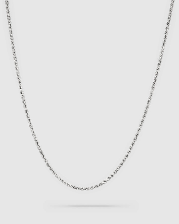 ロープチェーンは、しっかりと絡み合ったリンクで作られており、質感の次元を追加します。チェーンは、クラシックなトムウッドのバレルクラスプが特徴です。