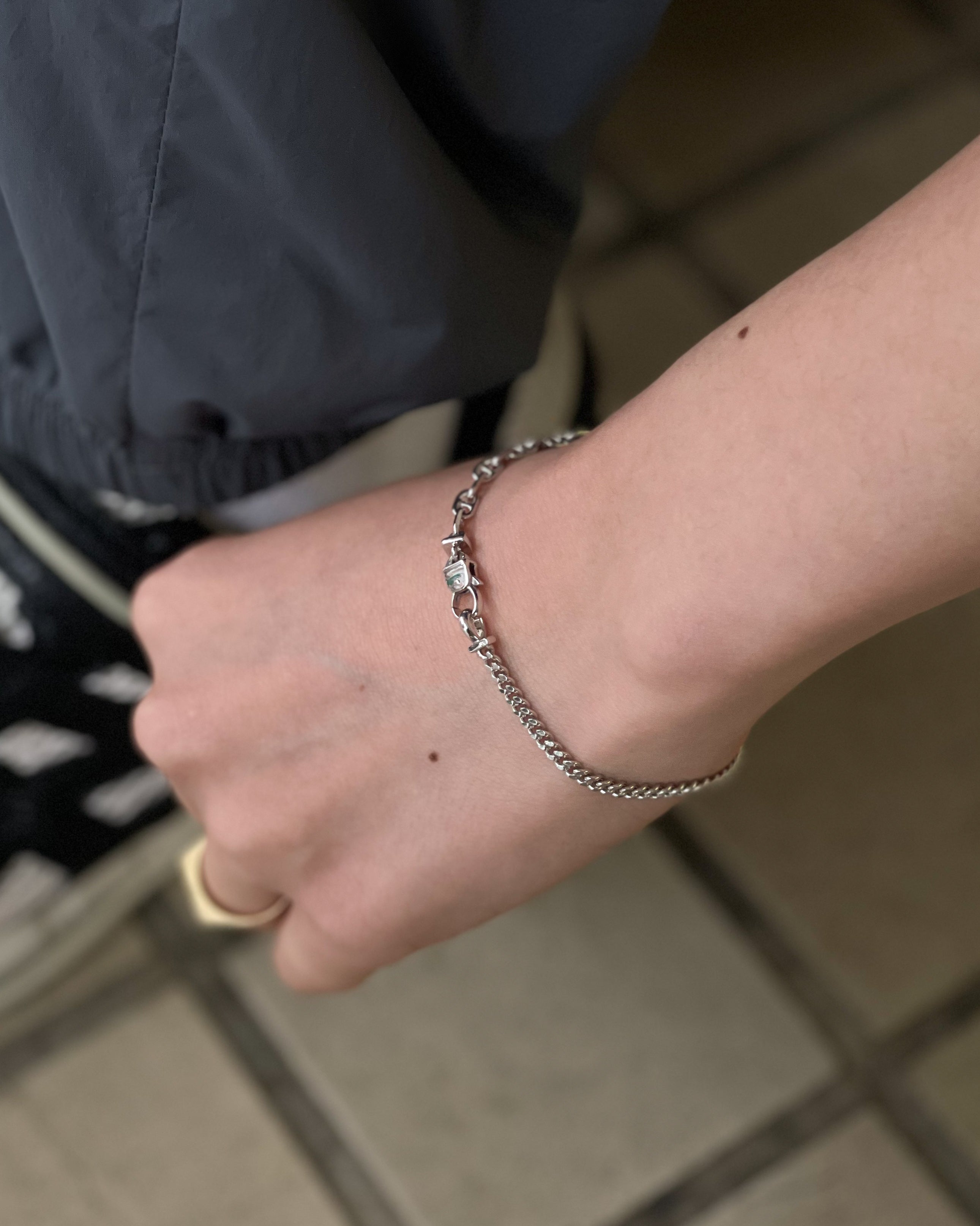 今シーズンより登場の"RUE"シリーズ。2つの異なるチェーンのコンビネーションが目を引く新たなデザイン。こちらは"SILVER CABLE"×"SILVER CURB"のコンビネーションで、シンプルでクラシカルなデザインが多かったTOM WOODの新たな試みとなる渾身の一品です。